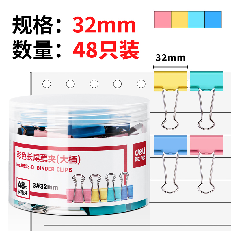 得力8553-D彩色长尾夹 ¥ 19.00